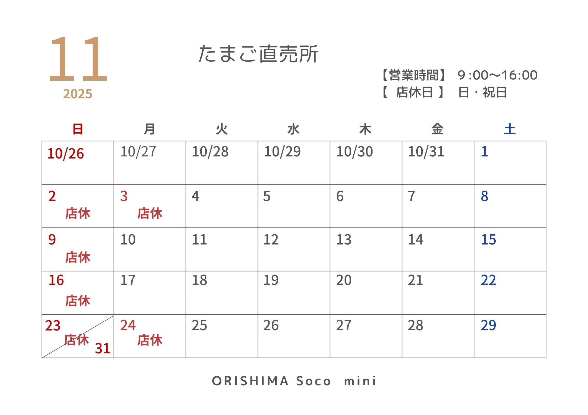 本日は11月の直売所営業日カレンダーのお知らせです。